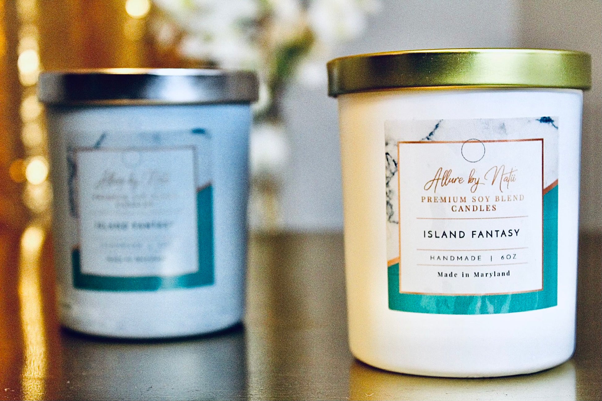 6oz Island Fantasy Premium Soy-blend Candle. Comprised of a vegan wooden wick that crackles for the ultimate relaxation.