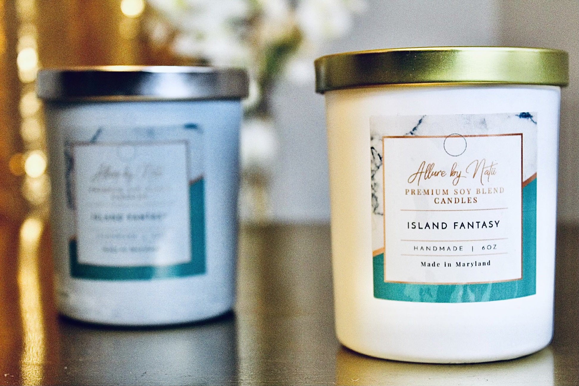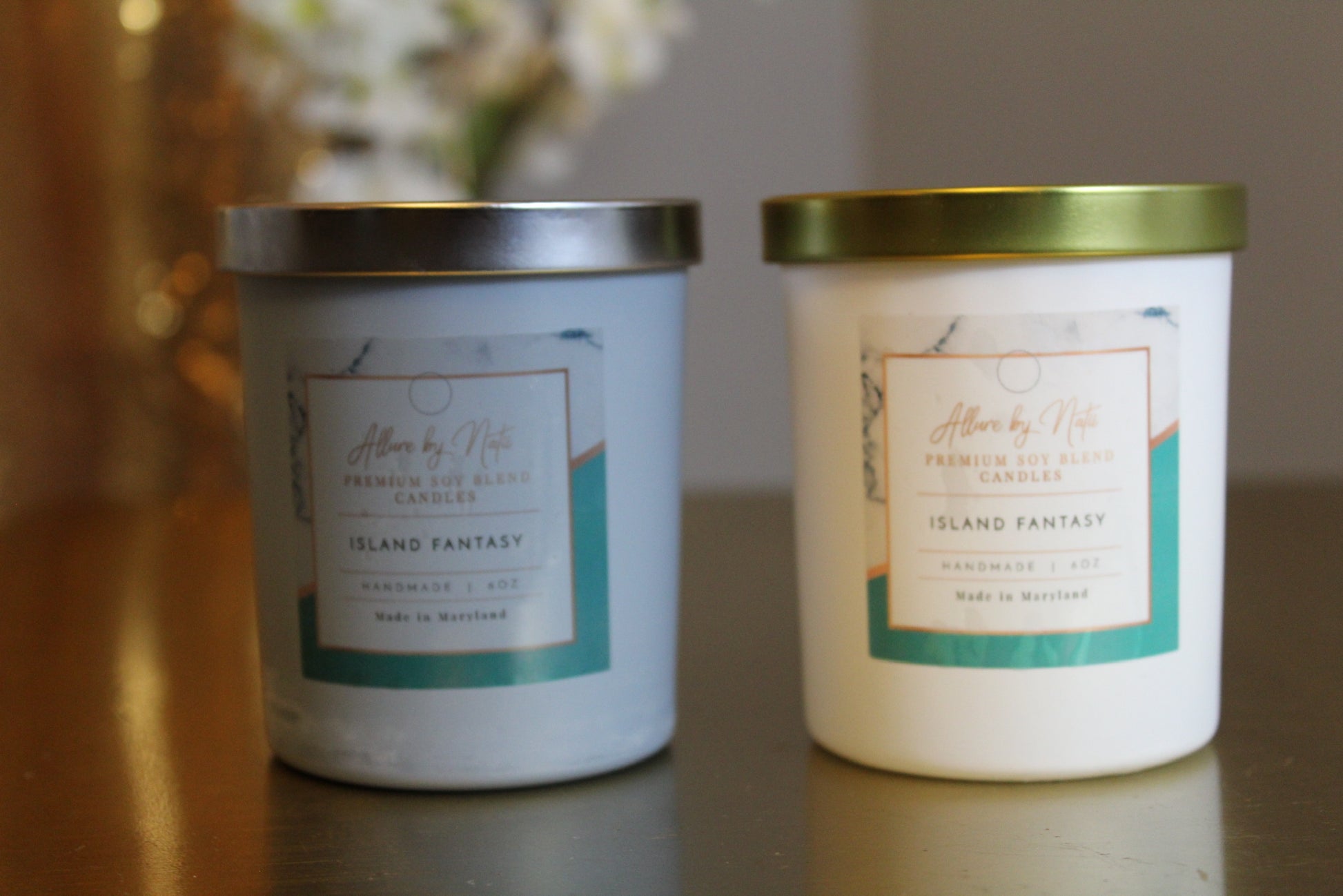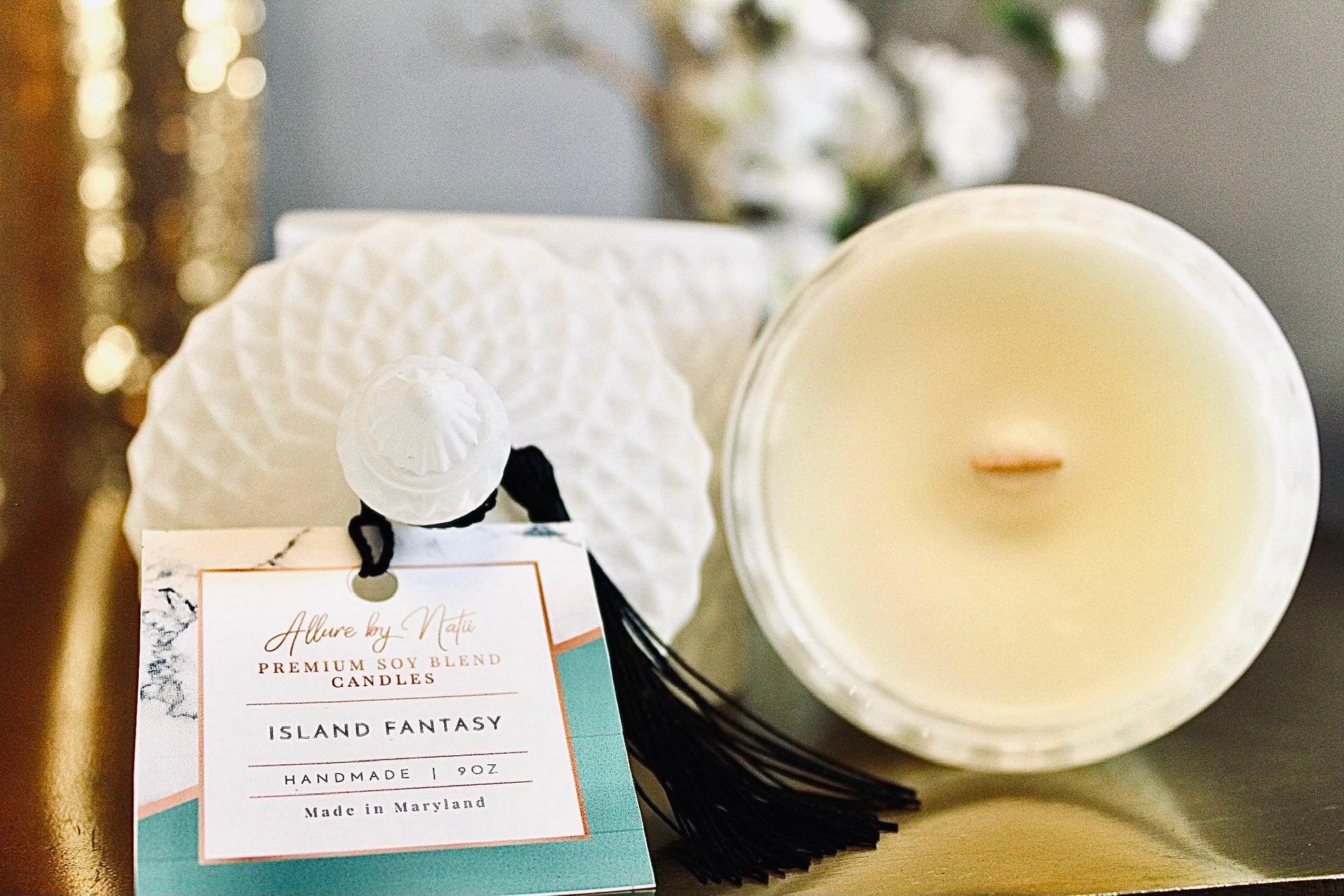 9oz Island Fantasy Candle made a premium soy-blend wax and a vegan wooden crackling wick for the ultimate relaxation.