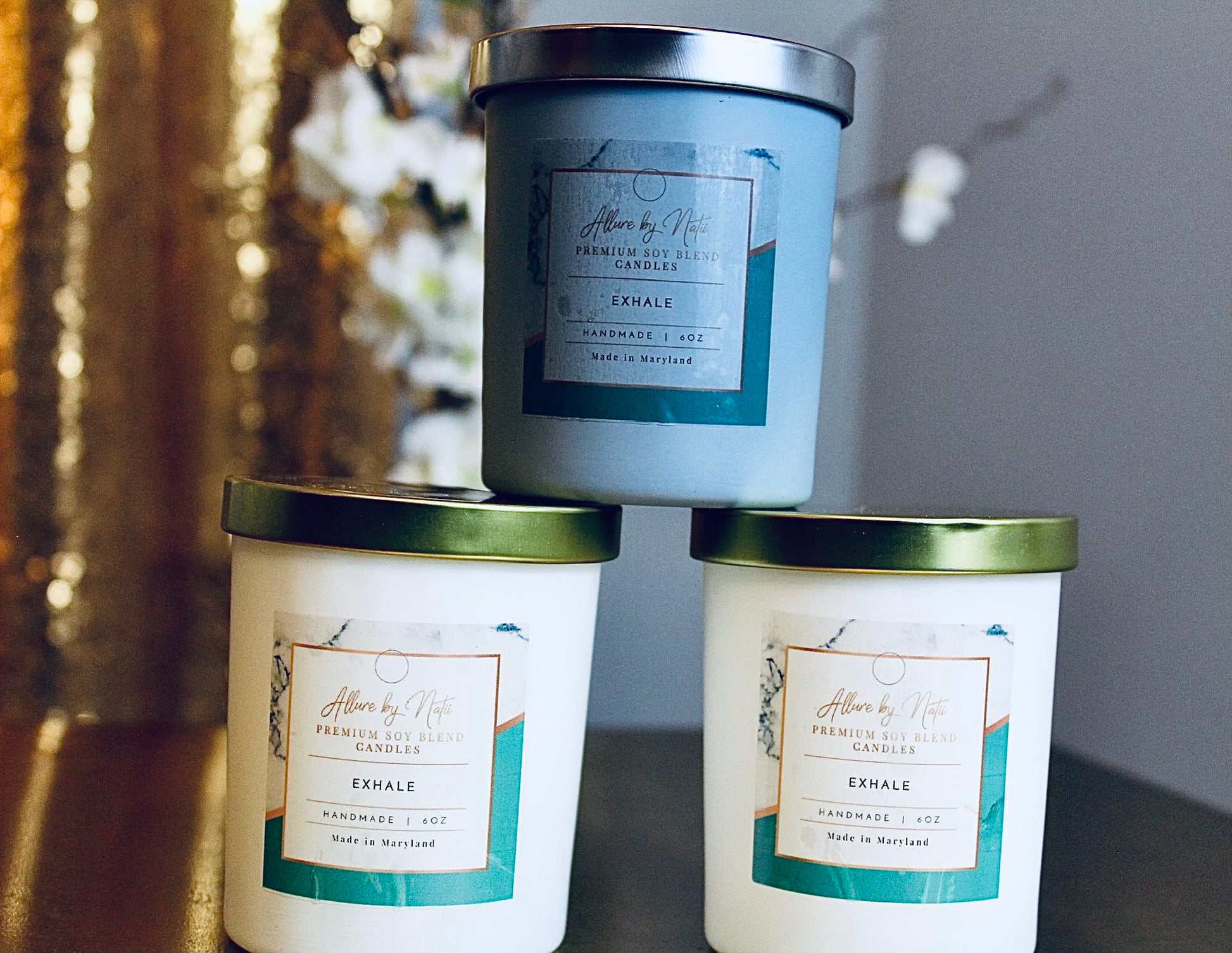 6oz Exhale Premium Soy-blend Candle. Comprised of a vegan wooden wick that crackles for the ultimate relaxation.